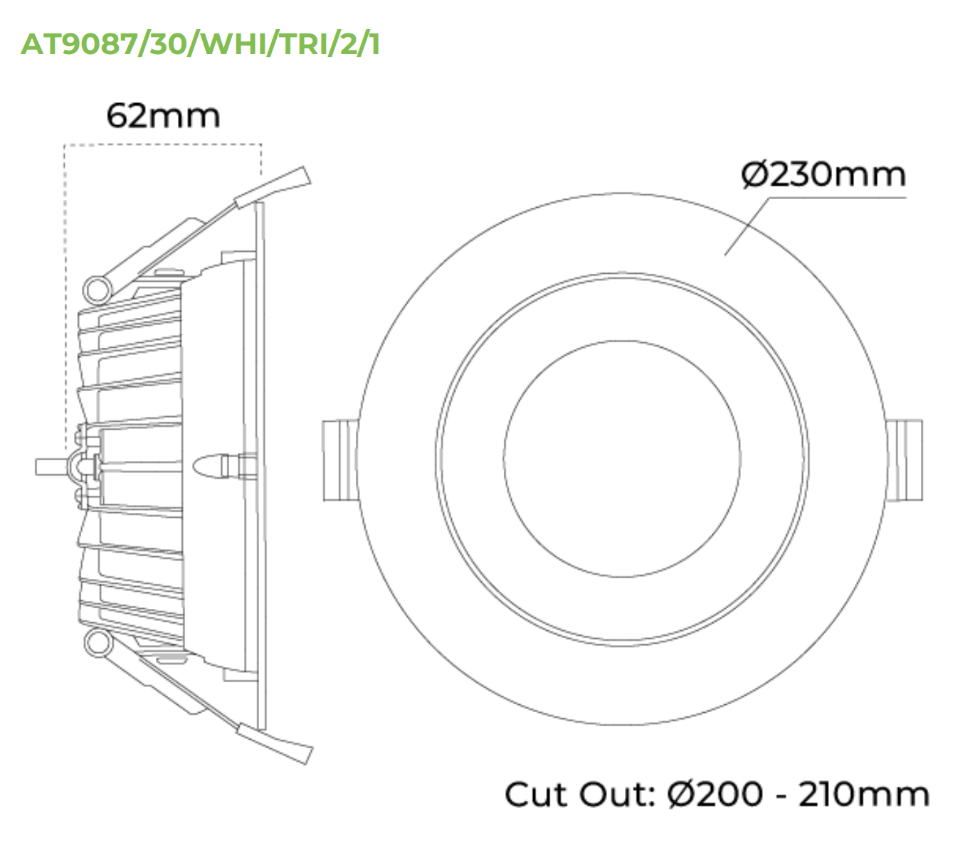 30W Commercial Low Glare LED downlight with dimmable driver – Tri-colour