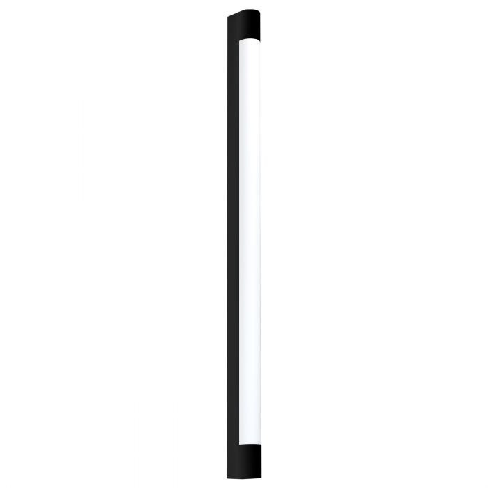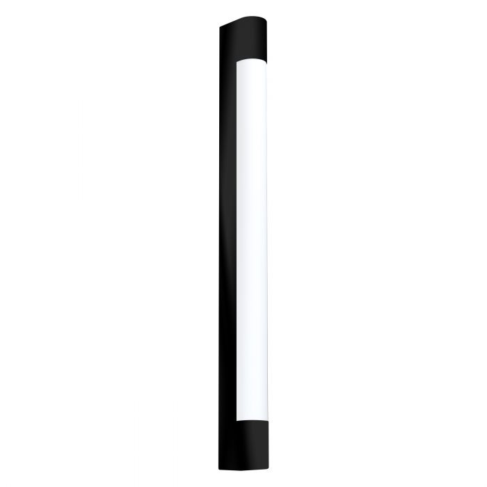 This mirror luminaire of the TRAGACETE series is made of black steel and has white plastic diffuser. The luminaire emits neutral white and has an IP44 rating for bathroom use.