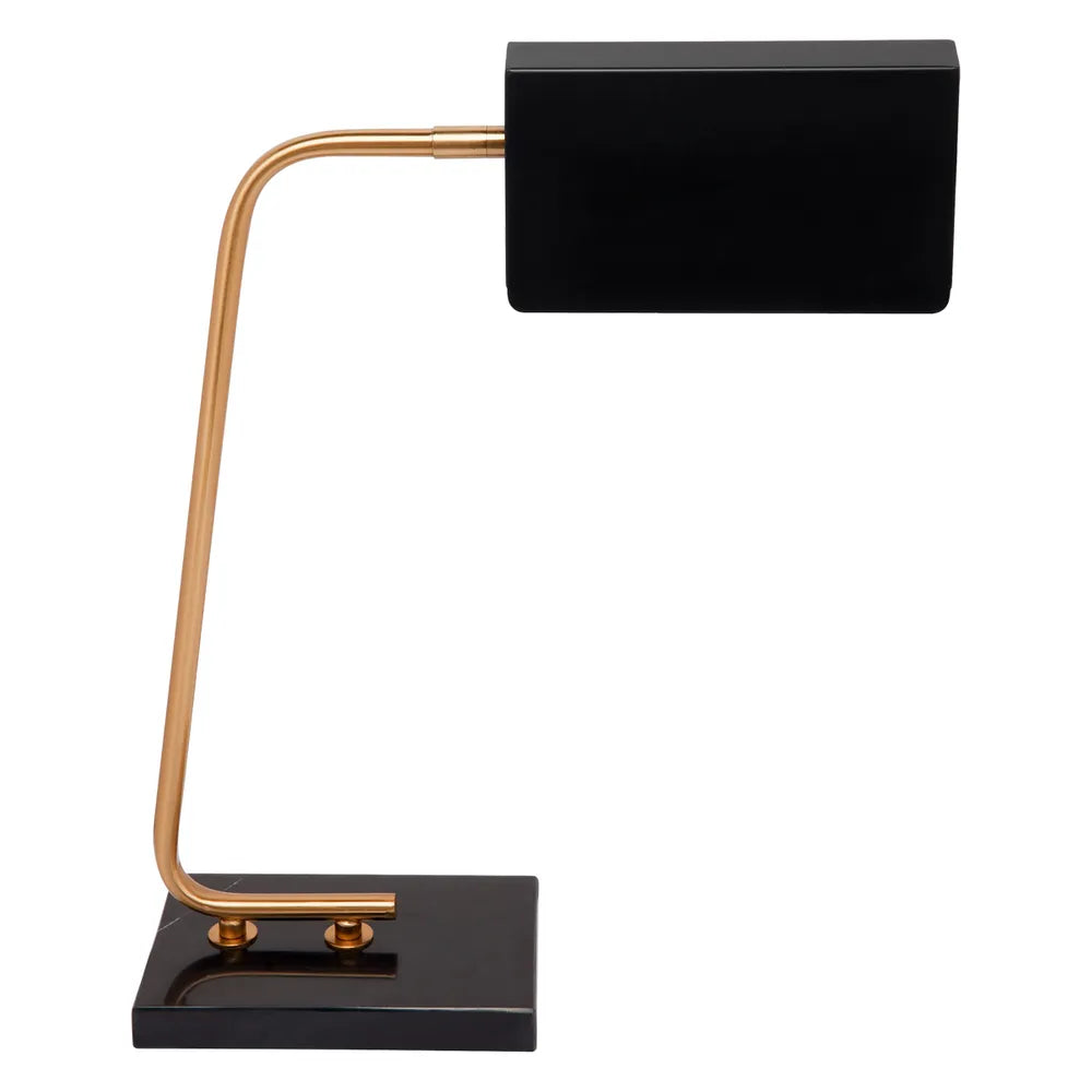 The Belfast Marble Table Lamp gives the aura of an old school library lamp with a contemporary twist. The light gleaming from a geometric iron frame contrasted to a sleek brass rod atop a white marble base is sure to elevate any ordinary studio space with it's dramatic take on an art deco design.
