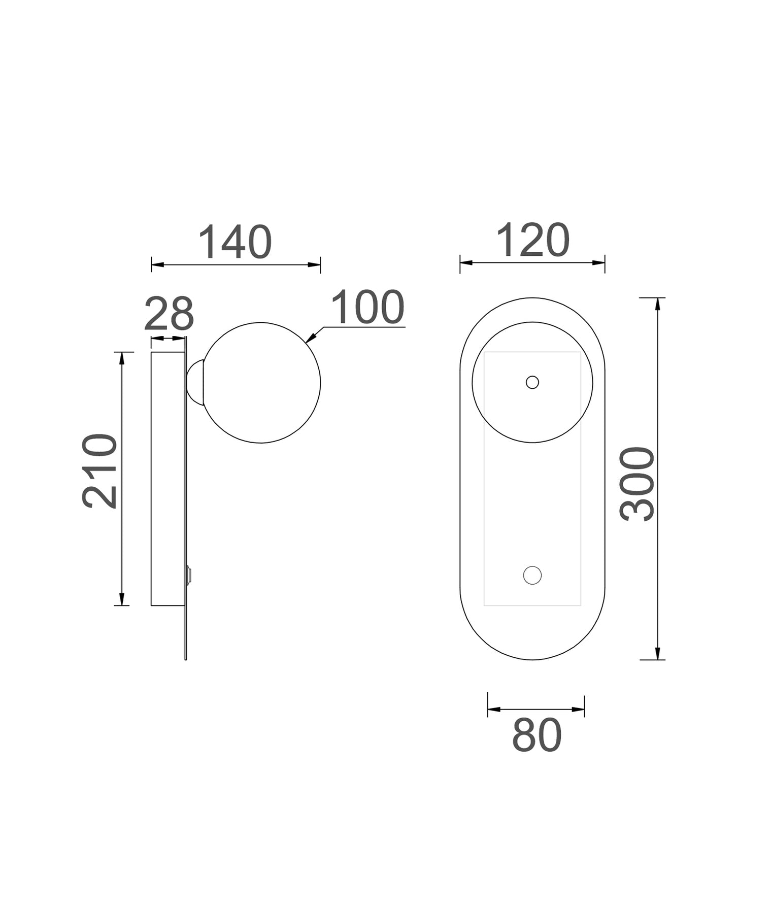 - Back plate: H300xW120xD140mm