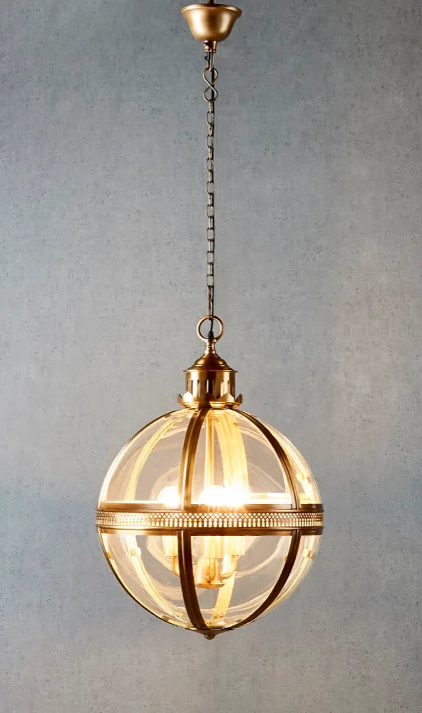 Our Saxon hanging lamp is a Victorian-era industrial fixture with metal chain, round clear glass and black wire for loft style elegant home decoration. This candle lantern has three-light candelabra glass candle globes to brighten any room, from the living room to the entryway. The Saxon is perfect for kitchen island and paired together to be hung in a row at the same or different height.