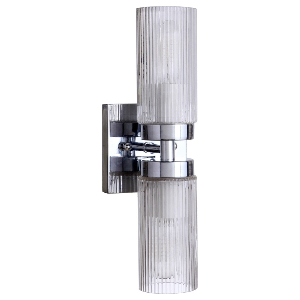 Stylish and versatile, the Chester 2 Light Wall Bracket is a perfect fit for contemporary and mid-century interiors. Featuring clear ribbed glass and a sleek, minimalist profile, it adds texture and visual interest to bathrooms, bedrooms, and living spaces alike. Available in two sizes and two finishes, the Chester bracket offers flexible styling options to complement your décor and lighting needs.