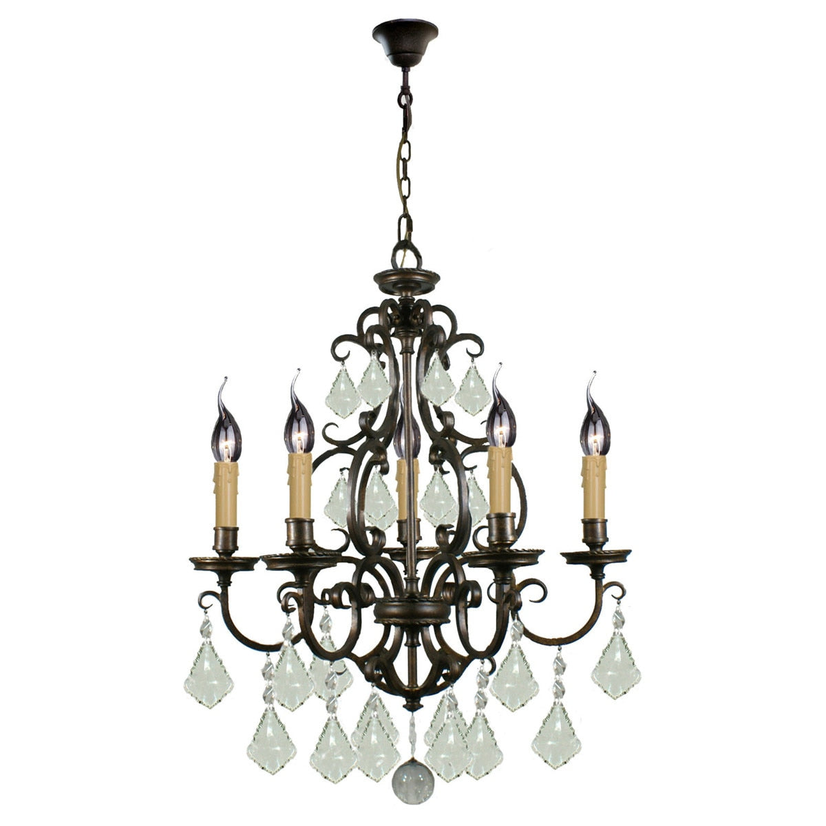Lighting Inspirations Louis 15th 5 Light Crystal Glass Chandelier Bronze