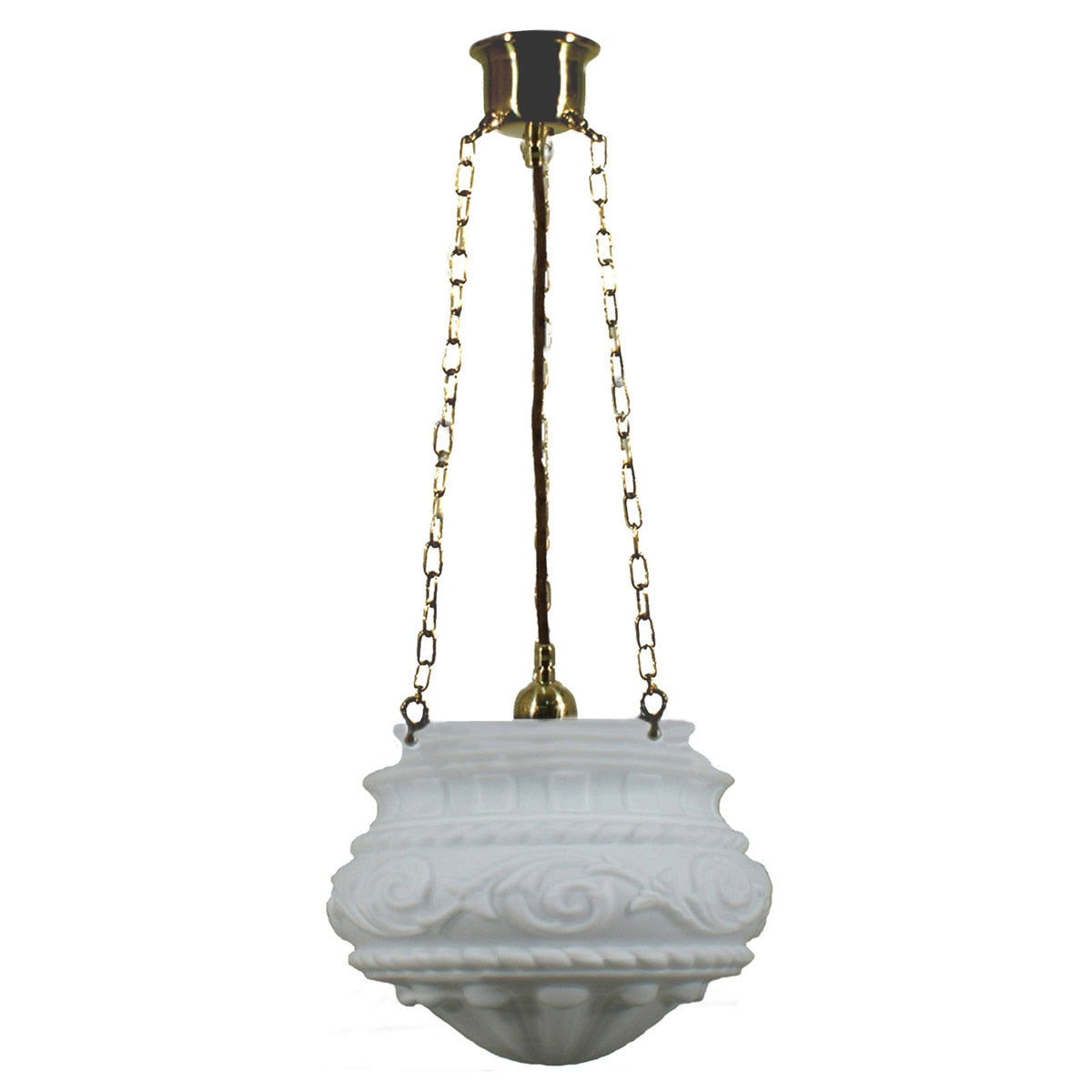 The Premier 12'' Opal Matte on 3 Chain Suspension Polished Brass combines the best of heritage lighting with the elegance of Edwardian-era design, exuding timeless sophistication. The classic glass shade, adorned with a raised scrolled leaf design brings vintage charm to bedrooms, hallways, or living areas. Suspended by a three-chain fitting crafted from high-quality solid brass, it offers warm ambient lighting while enhancing traditional interiors with its refined and enduring style.