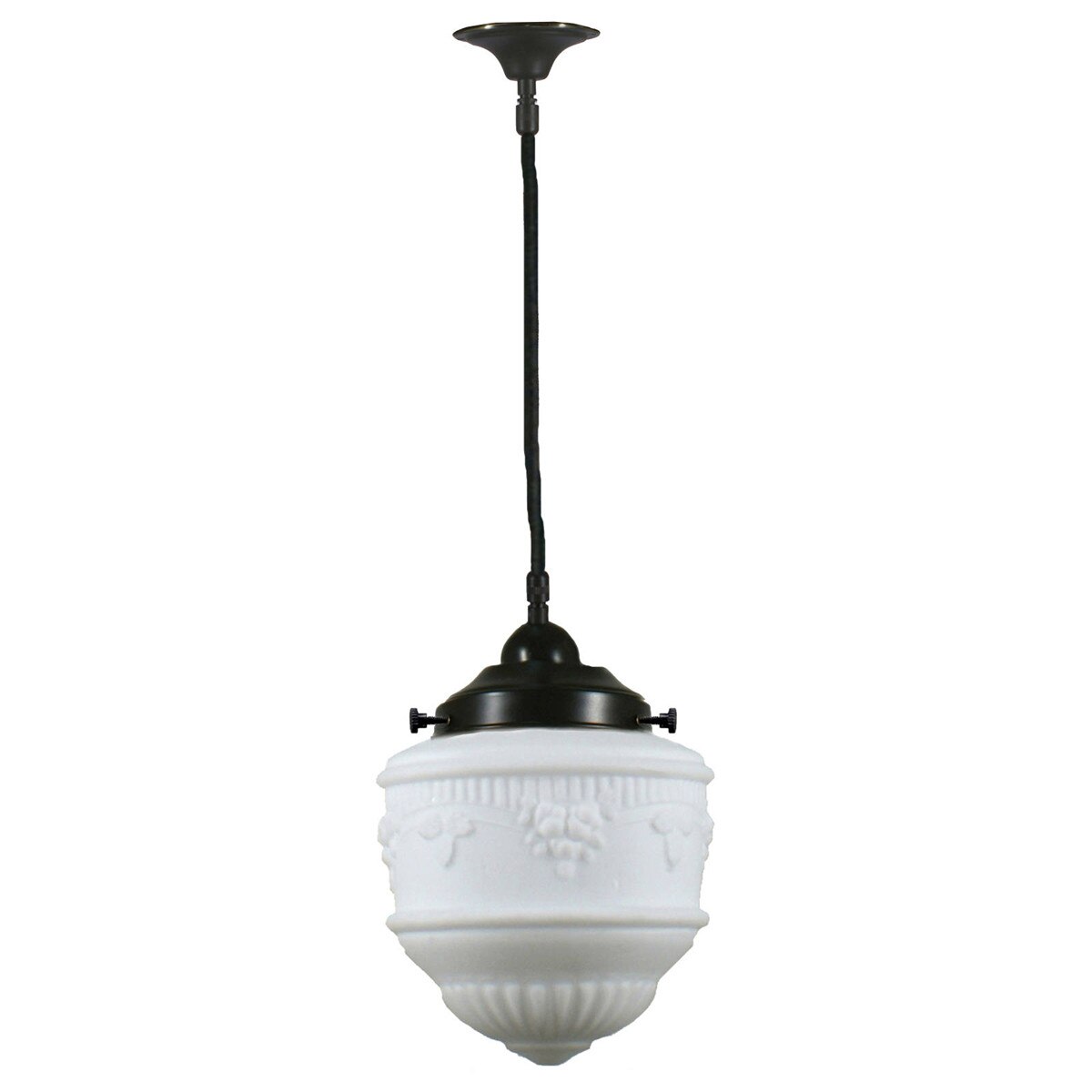 Lighting Inspirations Senator 8" Opal Matte On Cloth Cord Black Cloth Suspension Patina