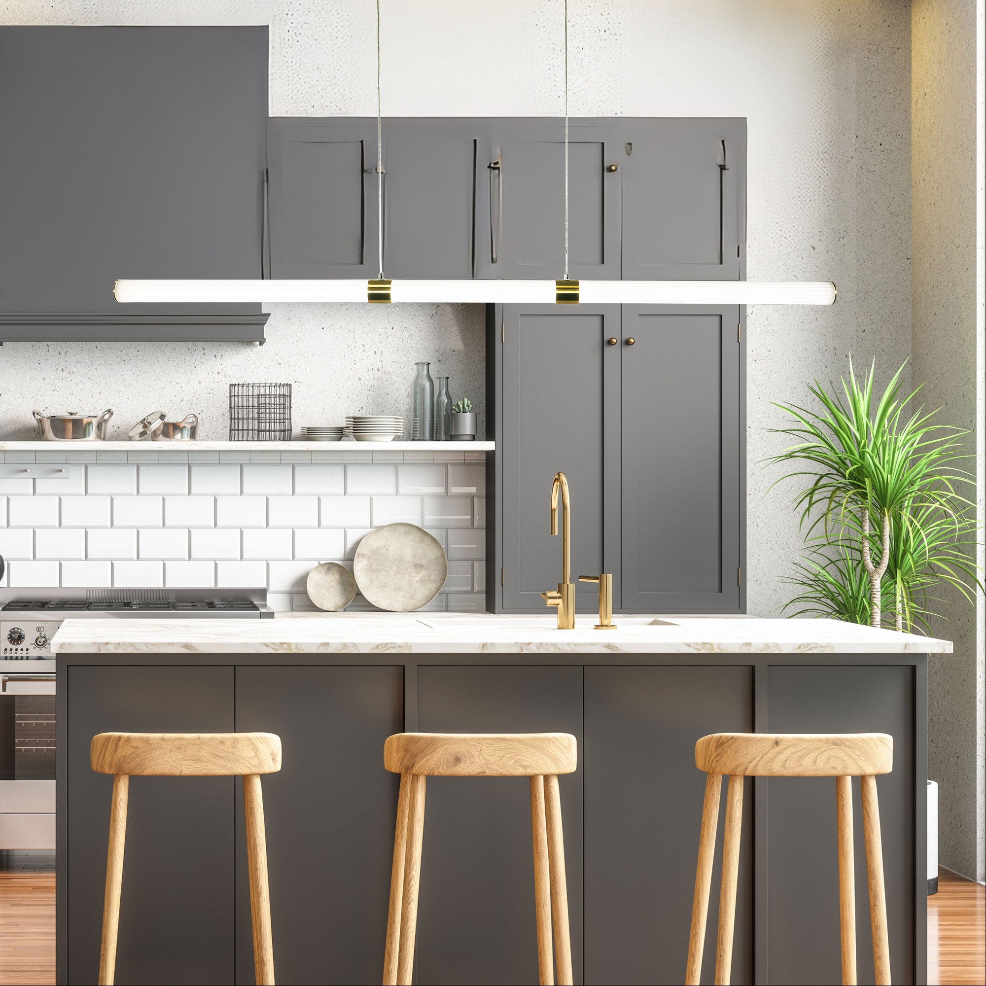 The MAXWELL is an elegant pendant, featuring a double frosted, ribbed acrylic diffuser with satin brass plated highlights. The colour temperature can be selected at time of installation. The MAXWELL is a wonderful linear pendant option for either your kitchen island or dining table.