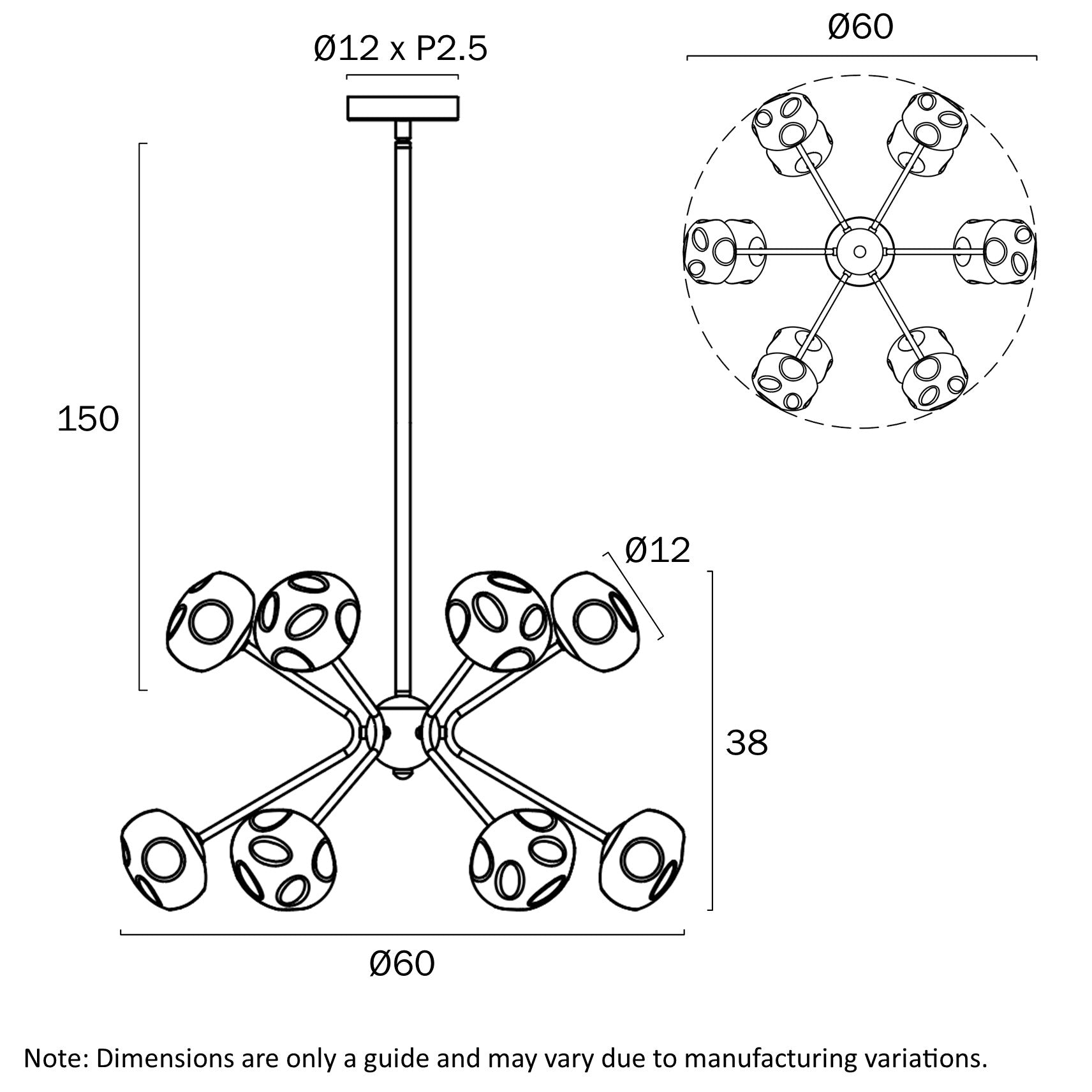 The Varlin pendant light seamlessly blends Art Deco opulence with contemporary flair. Available in 12 or 18 light configurations, its striking design features a sleek matte/mirror finish, adding a touch of modern elegance to any space.