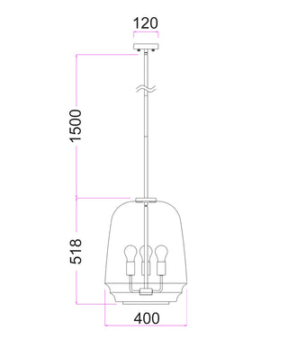 I purchased two identical light fittings for my dining and living rooms. They contain three globes which has greatly improved my light in these rooms as the previous fittings were both single globes. I am very happy with my new lights.