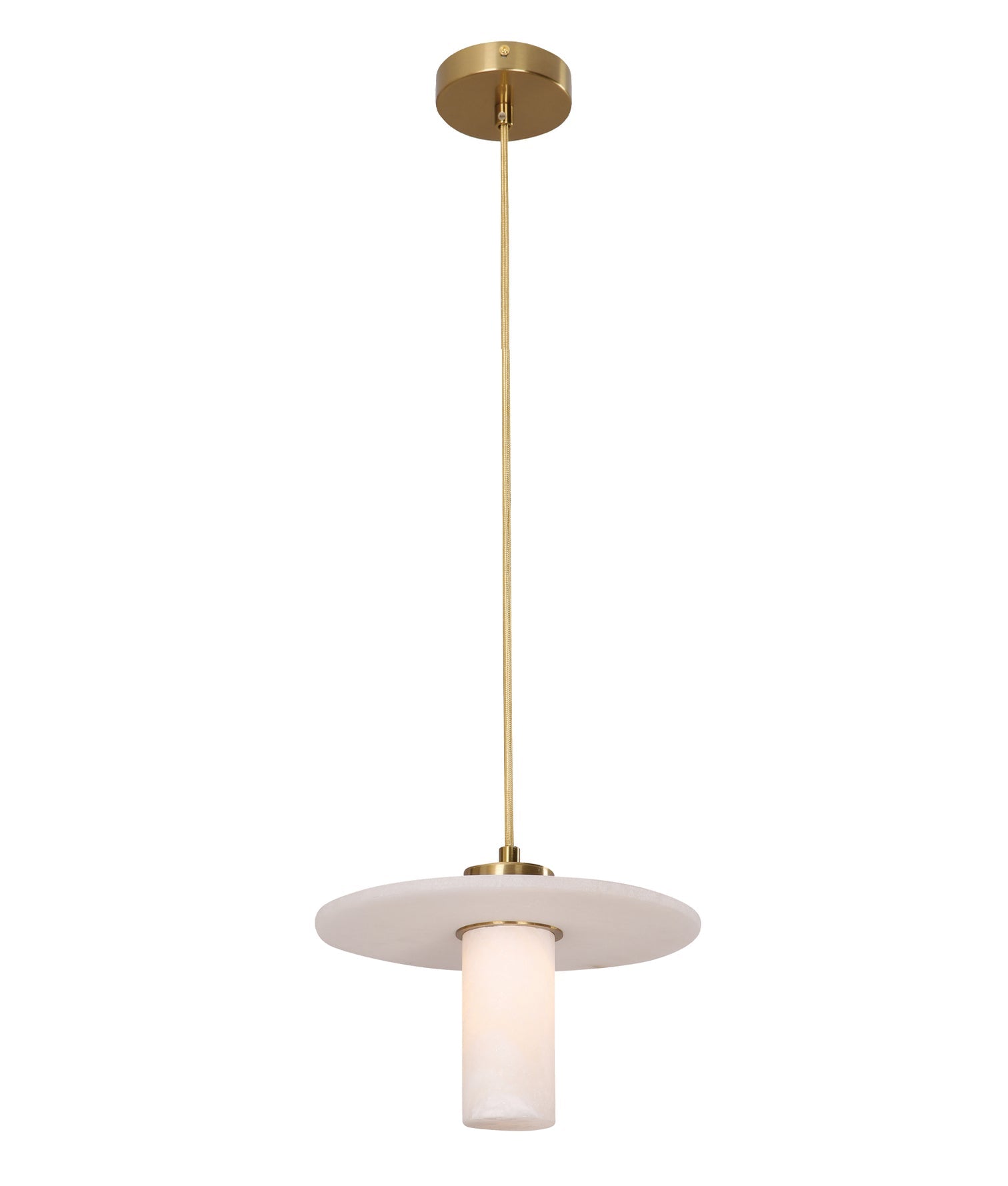 CLA Lucerna Interior Cylinder Round Hat Marble Shade Brass Highlight Pendant Light