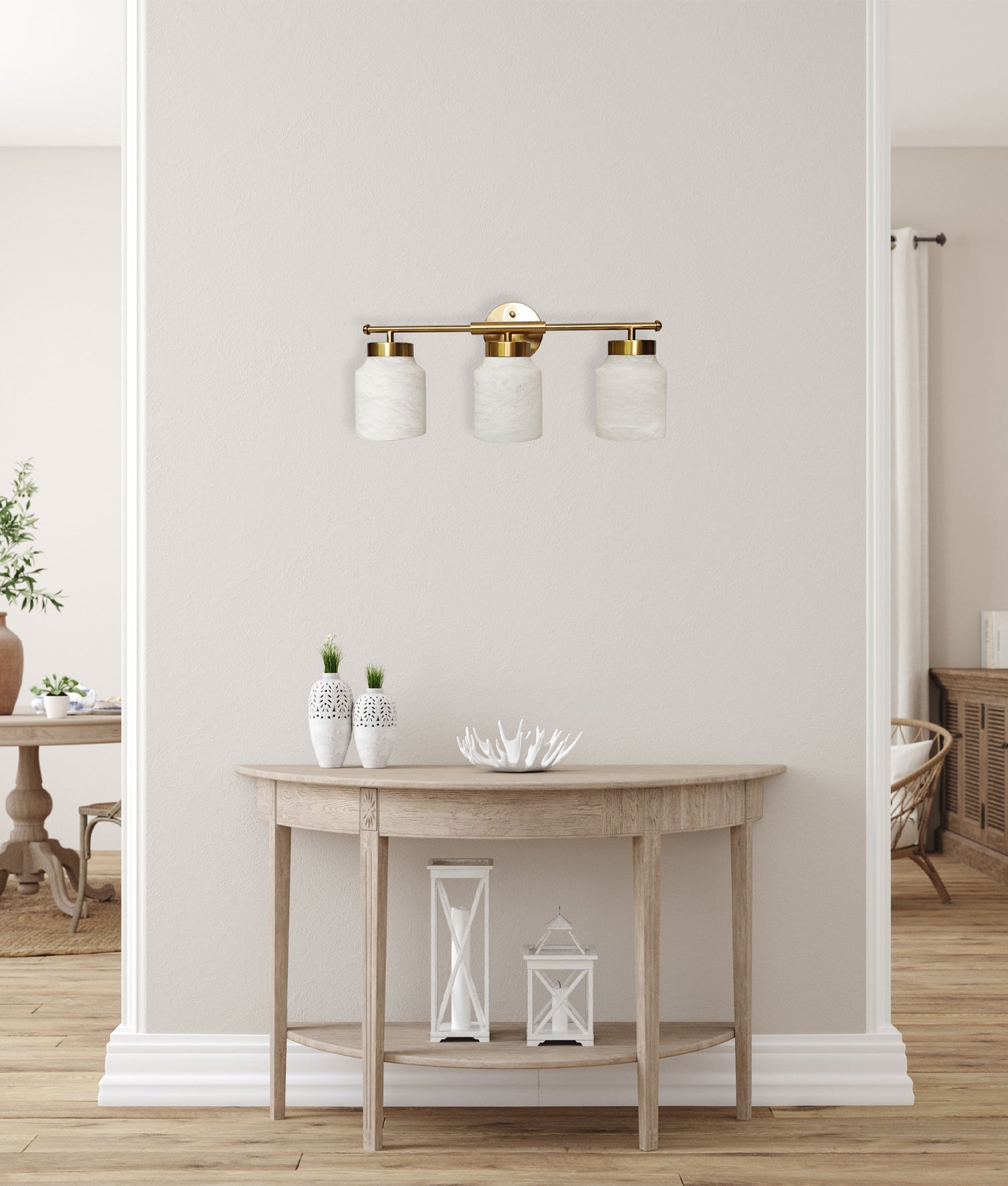 CLA Tufo Interior White 3 Light Jar Alabaster with Brass Highlight Wall Light