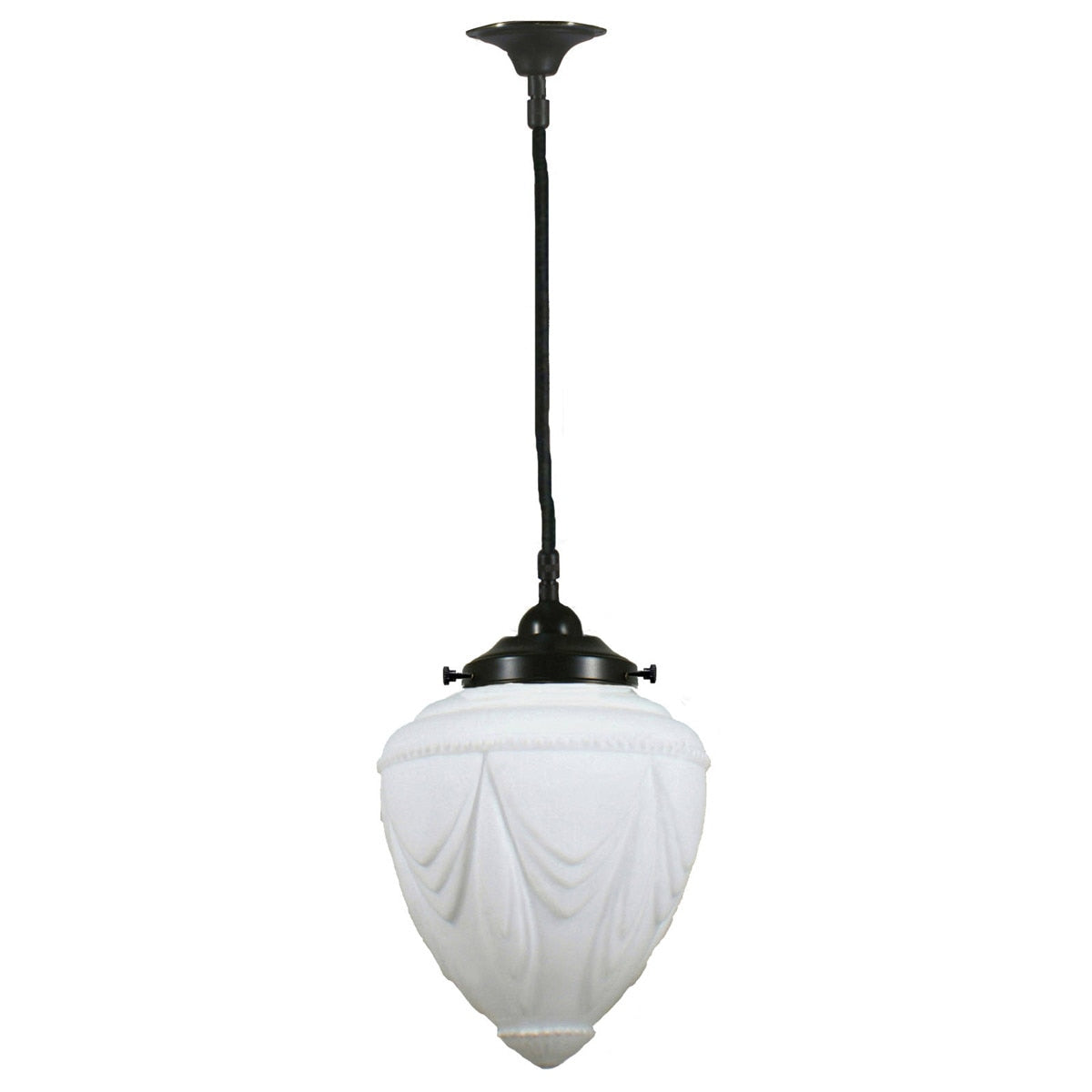 Lighting Inspirations Empire 8" Opal Matte On Cloth Cord Black Clooth Suspension Patina