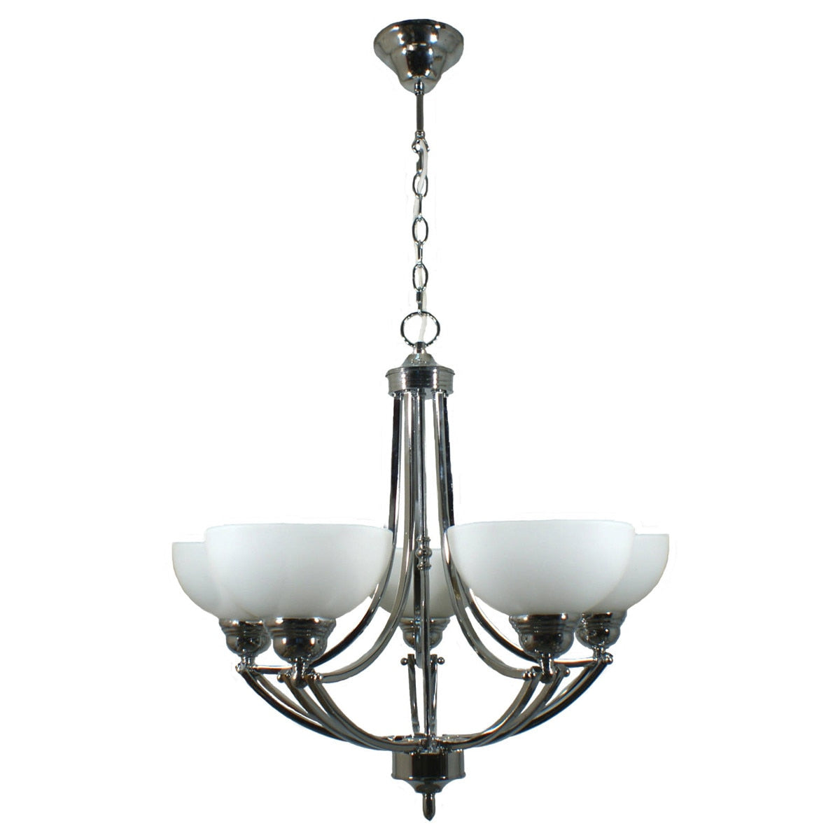 The Houston 5 Light 5 Arm Pendant Chrome is a versatile lighting fixture that combines vintage-inspired design with modern practicality. Ideal for a variety of indoor spaces, this pendant provides reliable illumination while adding a subtle decorative touch. Featuring opal glass shades and an Art Deco-inspired design, it brings a classic element to any room, complementing a range of interior styles. The Houston series also includes matching fixtures, allowing you to create a coordinated lighting scheme throughout your home.