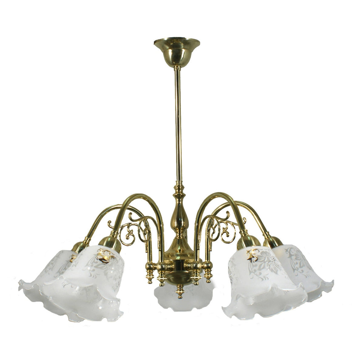Lighting Inspirations Victoriana 5 Light Pendant Polished Brass With 5008 29mm Frost Etched Shades