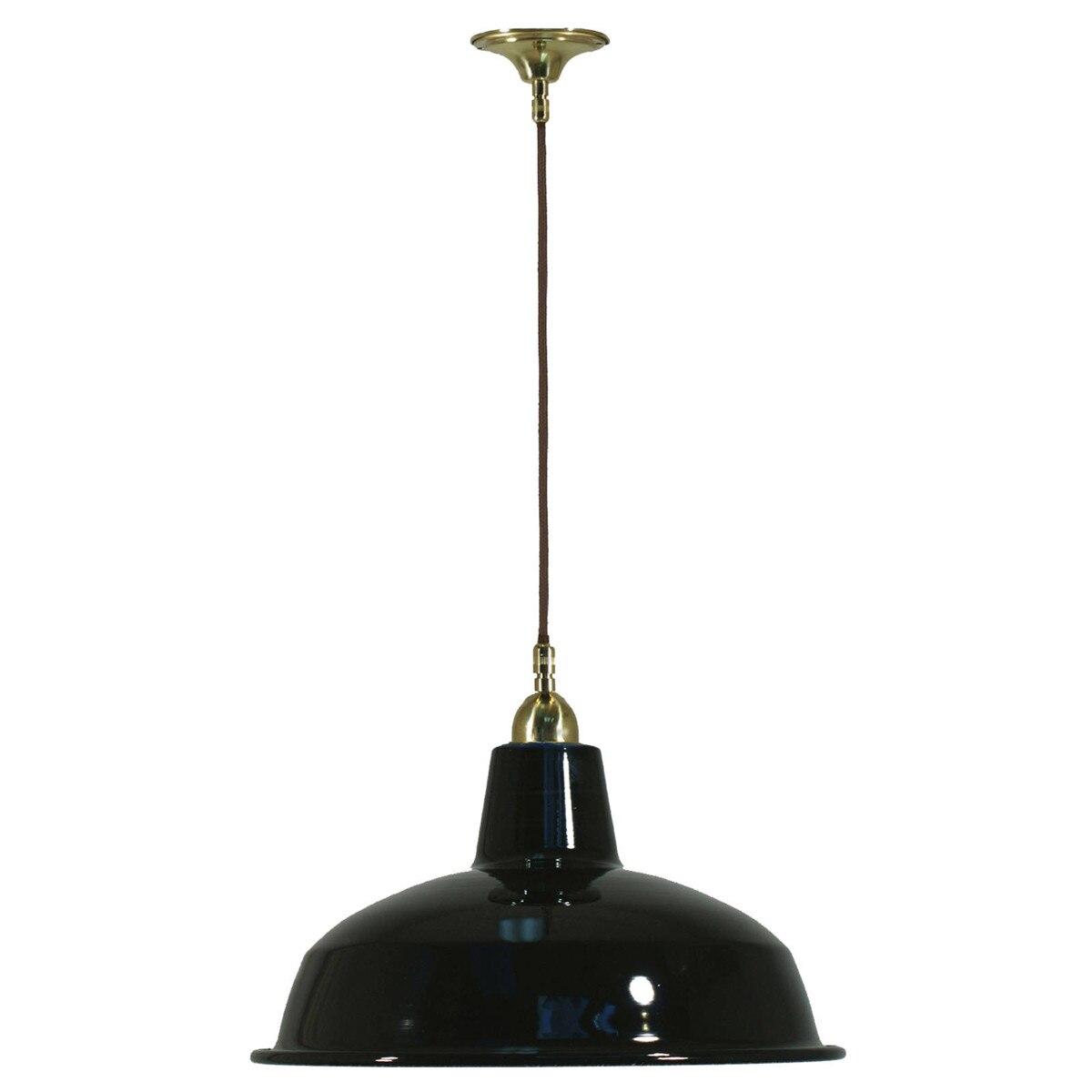 Lighting Inspirations Warehouse 420mm Black Metal Shade On Cloth Cord Suspension Polished Brass