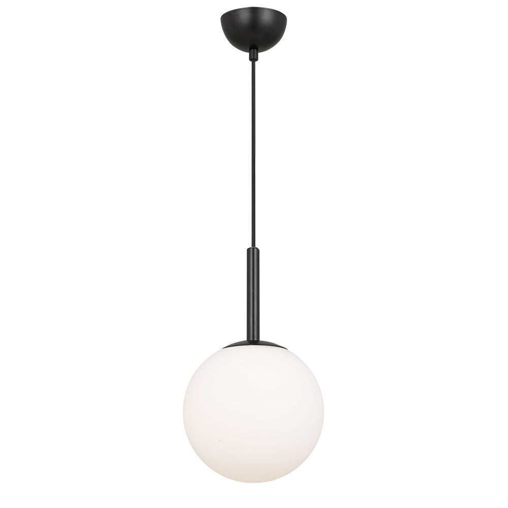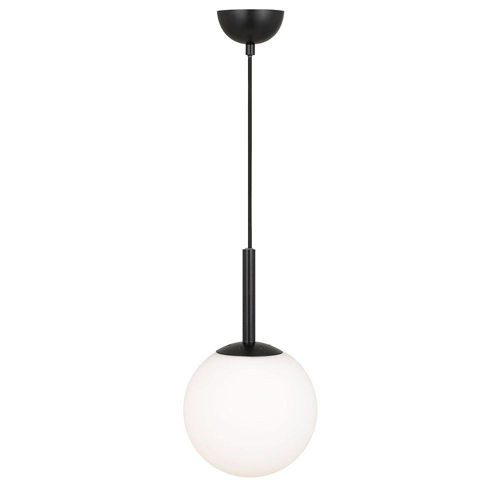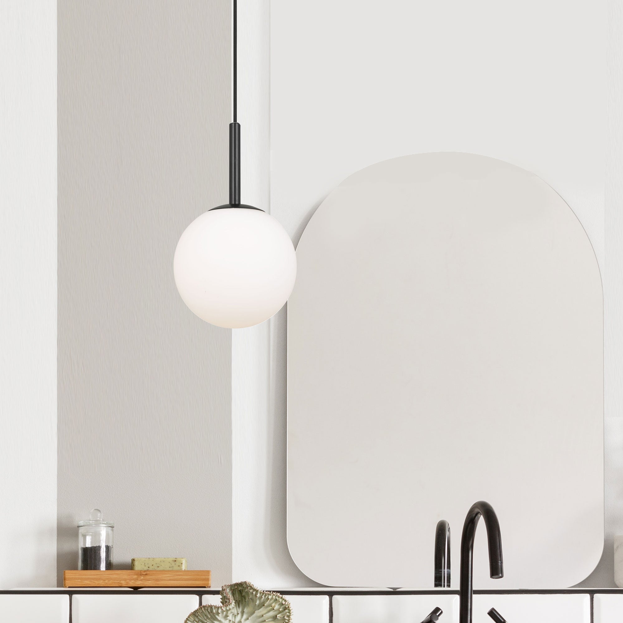 The Bally pendant is the essence of pure and simple lighting design. The sphere is finely blasted opal glass resembling the surface of fresh snow. The rounded shape is continued with the minimal metal gallery. A short metal stem finishes the story of mid-century modernism. Available in 4 sizes and 3 metal finishes.