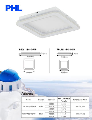 85W: 467x467x72 3000K/4000K/6000K 6585-7570lm
