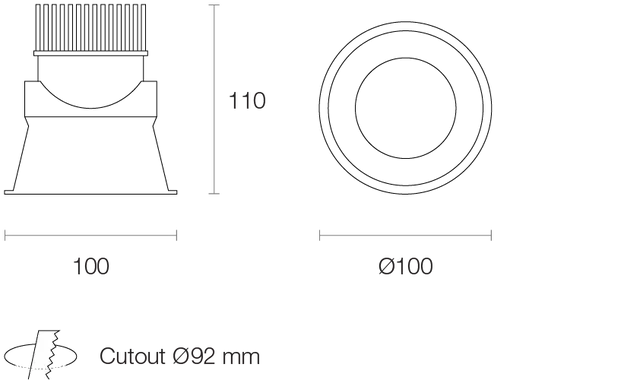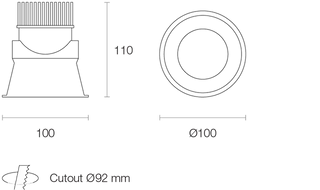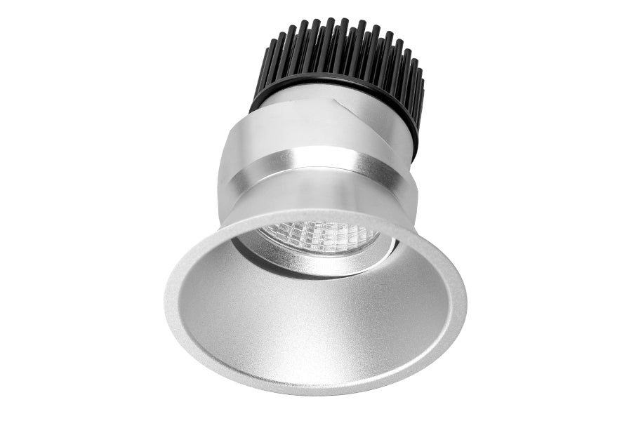 - Recessed adjustable LED downlight with thin trim profile coupled with a low glare conical housing