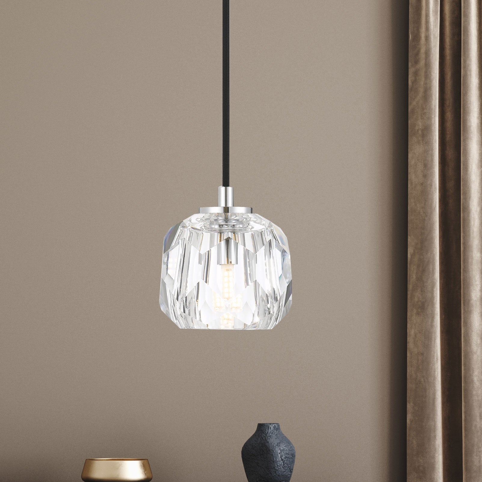 Spheres of prismatic cut crystal bring contemporary glamour to the Zaha collection. Each sphere is illuminated with a LED twinkle globe accentuating the cut surface. The family includes a 1 light pendant, 1 light wall lamp, 2 light table lamp, 4 light bar pendant, 5 light round pendant and 10 light round pendant. Available in Antique gold or chrome.