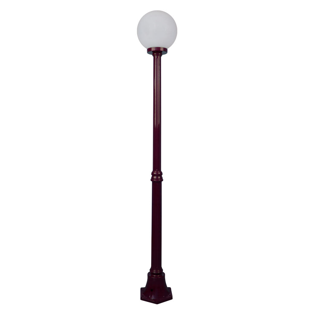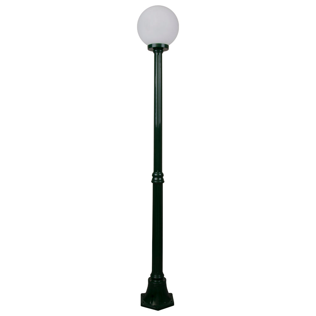 Siena 1 light 1.85m post light, die-cast aluminium body complete with 250mm opal acrylic sphere.