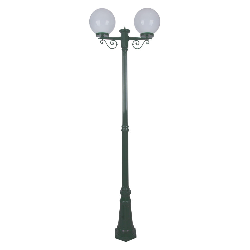 Siena 2 light 2.35m post lights, die-cast aluminium body complete with 250mm opal acrylic sphere. Made in Italy, assembled and powder coated in Australia.
