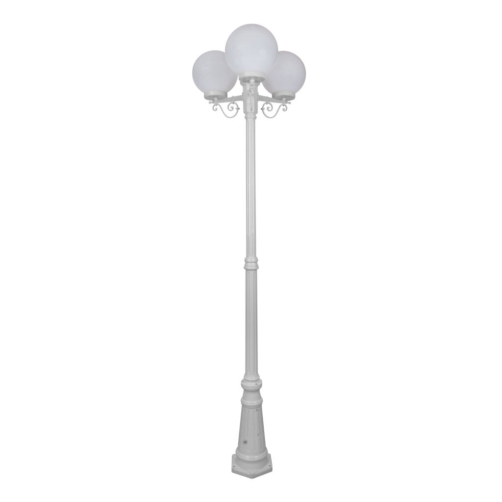 Siena 3 light 2.35m post lights, die-cast aluminium body complete with 250mm opal acrylic sphere. Made in Italy, assembled and powder coated in Australia.