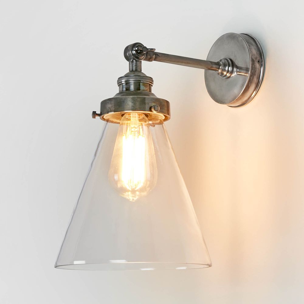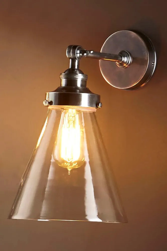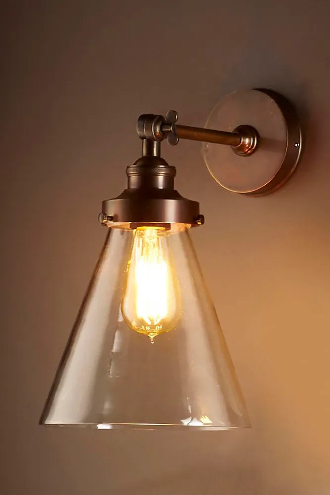 The cone clear glass shade is eye-catching with one interlocking feature on the arm to adjust the angle of the lamp.