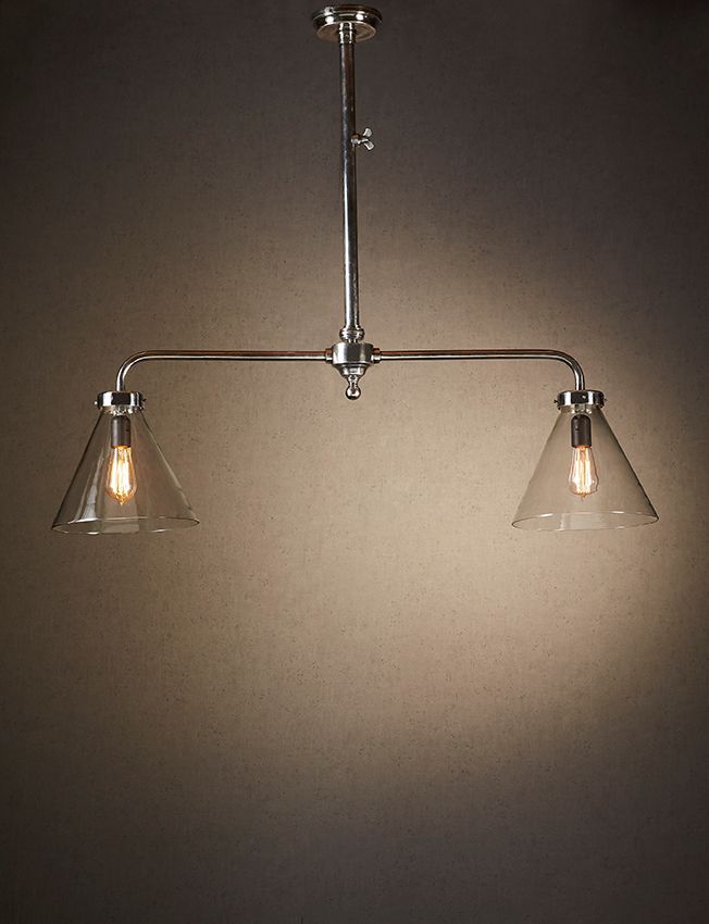 Our two arm Gadsden pendant is the ideal fixture for innovation and modern design with clear cone glass shade. A glass hanging pendant is an elegant and versatile lighting fixture that adds a touch of sophistication to any space. The arm is adjustable to maximum of 135cm longest from top to bottom of shade to the shortest length is 103cm. The arms are made of solid brass and is of the highest quality. Whether used as a focal point in a dining room, kitchen, or living area, the glass hanging pendant combines modern design with functional illumination, creating a chic and inviting ambiance.