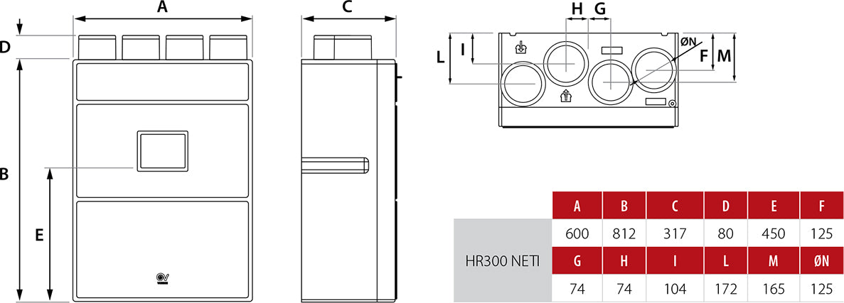 Vortice HR300 NETI Ultra-compact Ventilation Unit with Inbuilt Heat Recovery