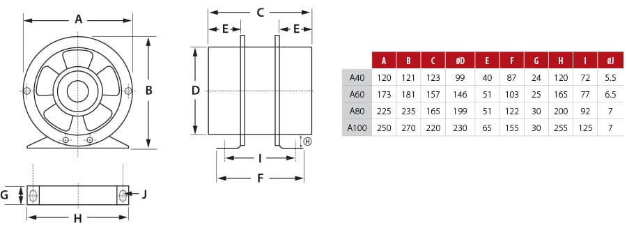 The A series axial fans are ideal for bathrooms and laundries. The A series axial fans are housed in a robust, non-corrosive metal casing.