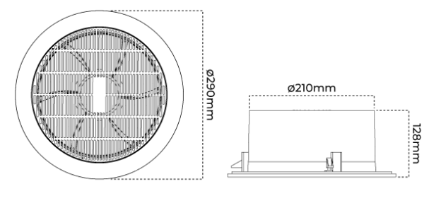 | Item Code | Minimum Ceiling Depth | Cutout | Product Height | Product Length | Product Width |