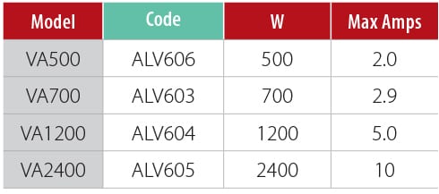 | VA2400 | ALV605 | 2400 | 10 | - |