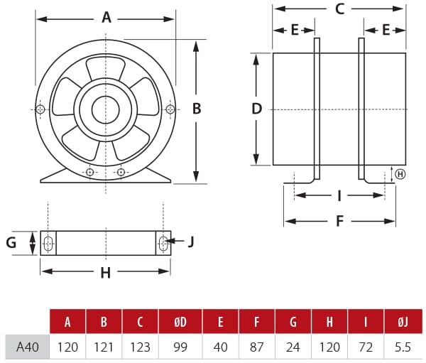- 1 x A40 in-line fan