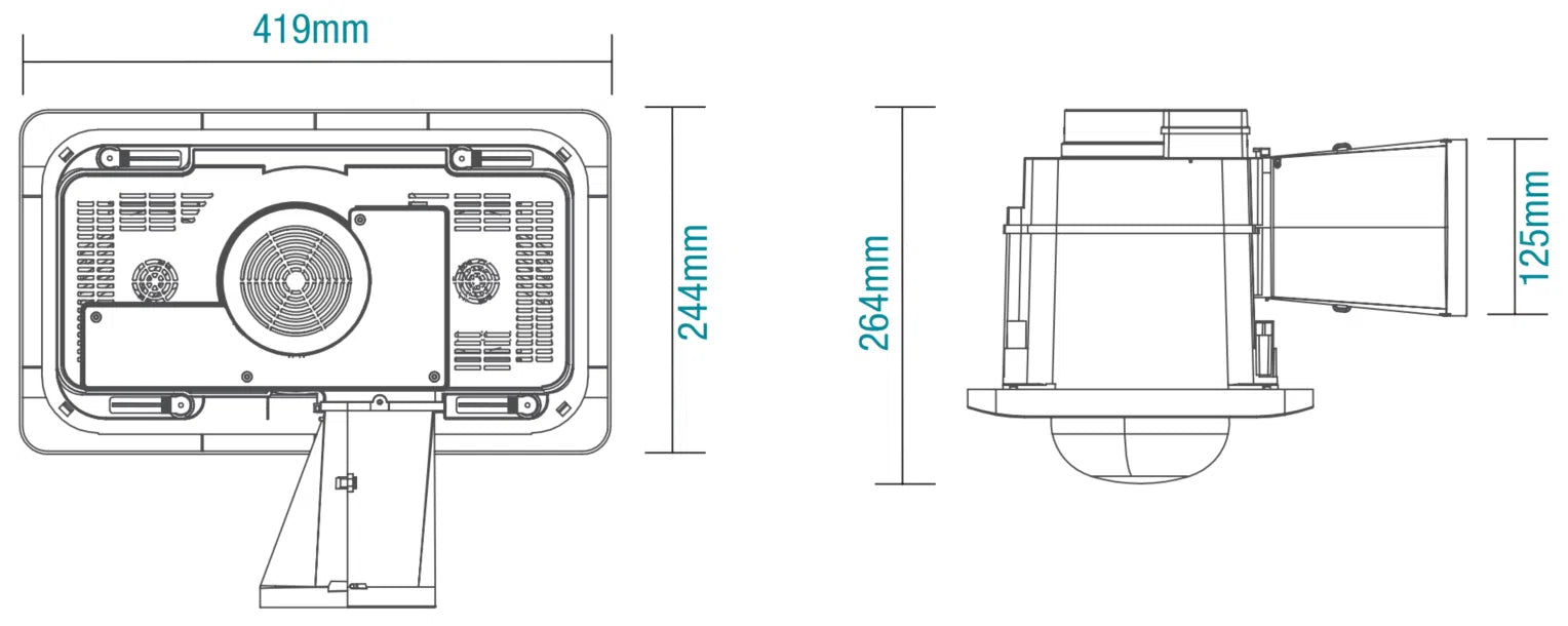 - Polypropylene (PP) housing with polycarbonate (PC) fascia