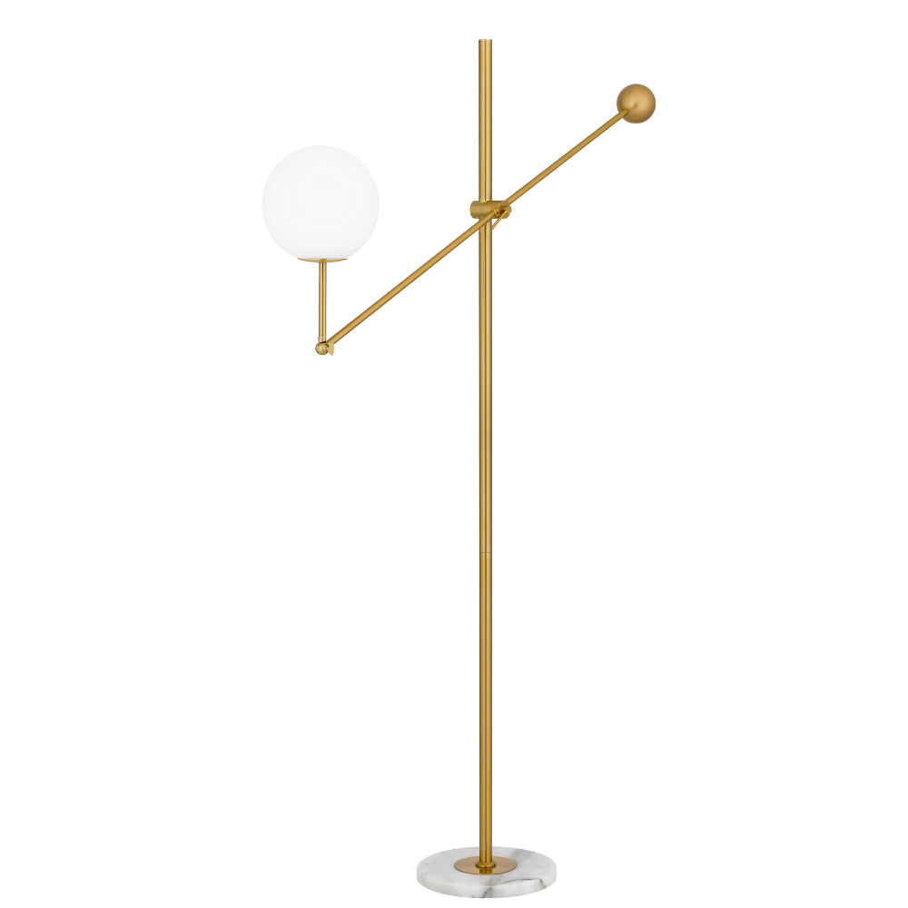 The KEMI floor lamp's sleek and simple design make it a perfect fit for any décor, and its vintage mid-century style adds a touch of charm to any space. The metalware is simple and angled, and is paired with a marble base for a chic and sophisticated touch. The Kemi comes in two finishes, including antique gold and satin black, so you can choose the one that best fits your décor. The mouth-blown shade adds a unique touch to the lamp and diffuses the light to create a warm and inviting atmosphere.