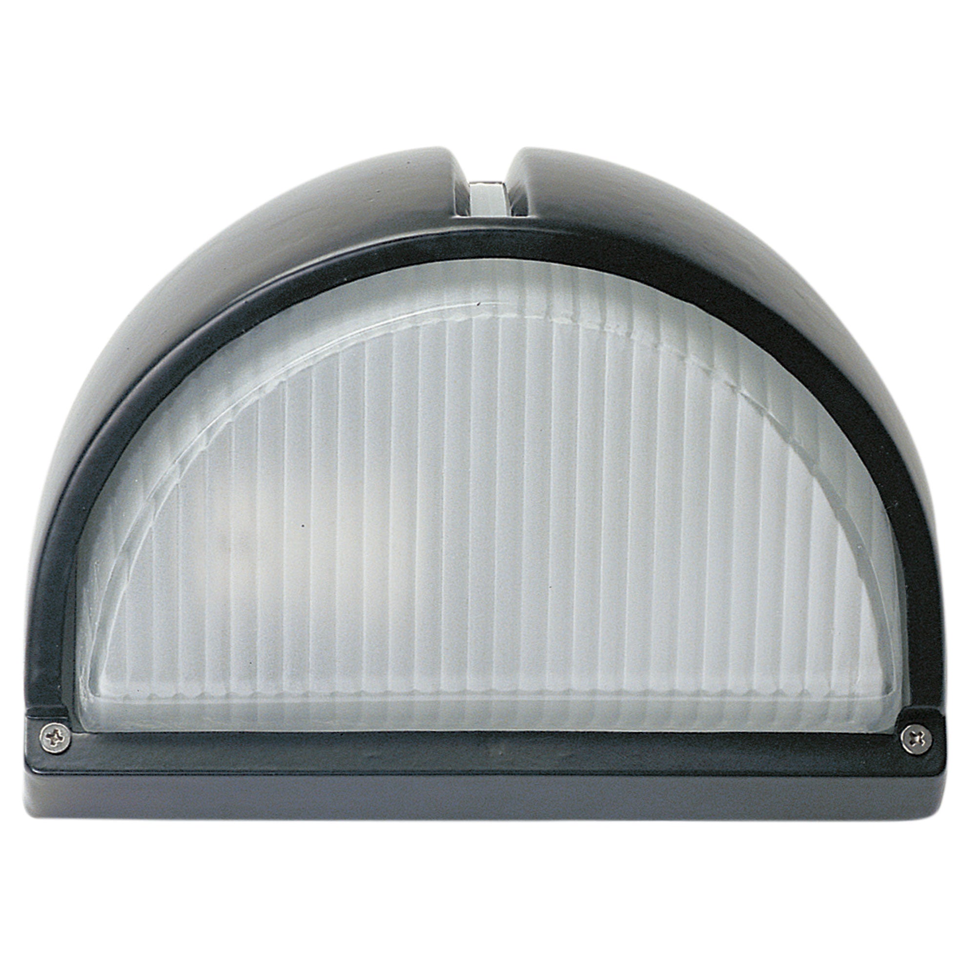 Cheval wall mounted outdoor light is angled down for efficient light distribution. Simple powdercoated di-cast fitting with a glass lens. Ideal for use with an LED globe.