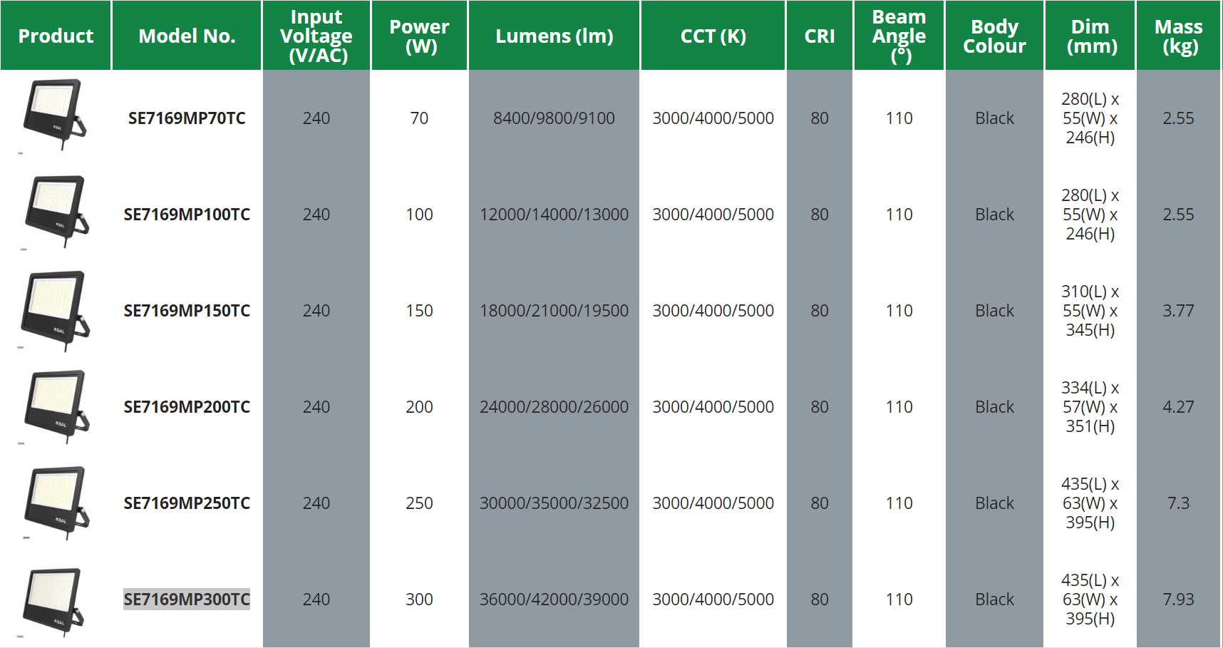 SAL Tradestar SE7169MP 70/300W IP65 LED Tri Colour Floodlight Range