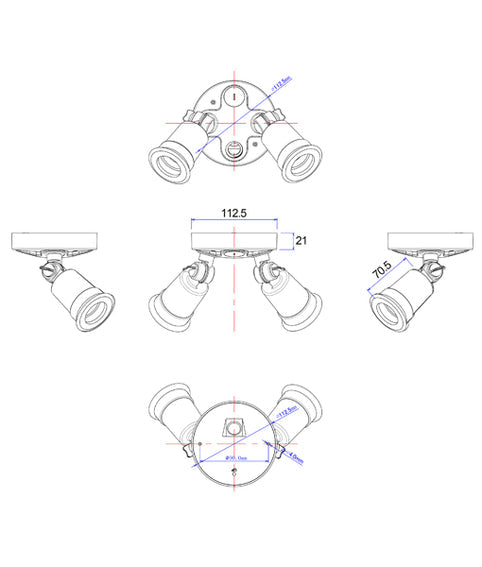 - Lamp holder: E27 (Max.150W halogen PAR30 globes)