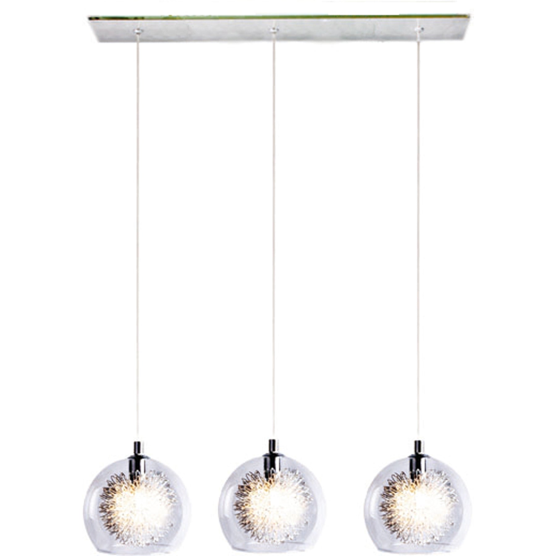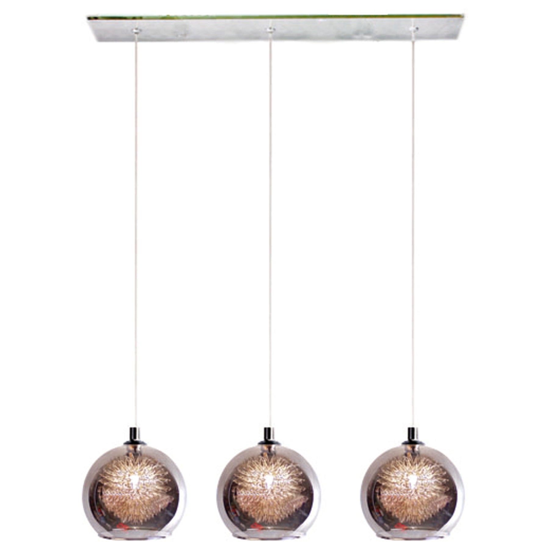 I purchased two identical light fittings for my dining and living rooms. They contain three globes which has greatly improved my light in these rooms as the previous fittings were both single globes. I am very happy with my new lights.