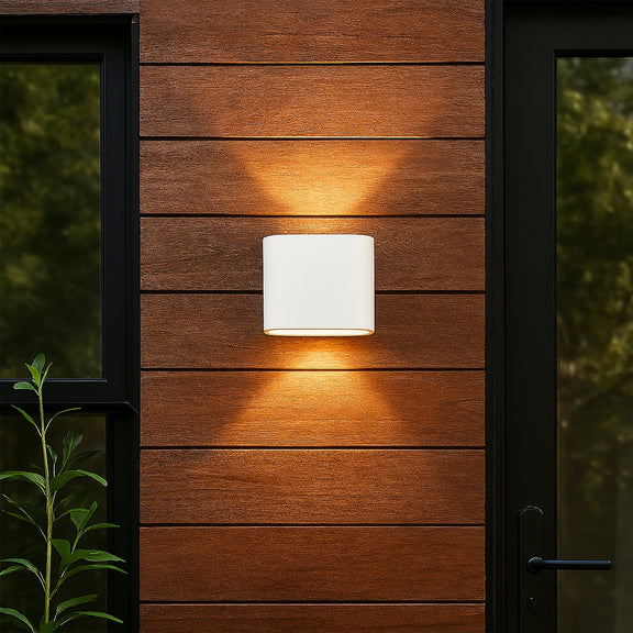 Elevate your outdoor ambiance with the Elaro Wall Sconce, featuring dual up/down illumination that casts balanced light from both the top and bottom. Featuring a smooth curved finish and optical lens, the wall light is a sleek and modern wall light ideal for contemporary and architectural spaces. for enhanced visibility on porches, front doors, decks, and garages, ideal for patios, yards, entryways, and commercial spaces.