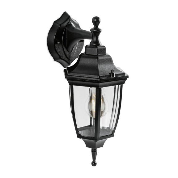 The Lunor Down Outdoor Wall Light combines timeless elegance with rugged functionality, featuring a classic downward-facing lantern design with rounded clear glass panes and an intricately detailed backplate that adds traditional charm to your home's exterior. Whether used singly to highlight an entry or in pairs to frame a garage door, the Lunor Down Outdoor Wall Light offers the perfect blend of form and function for your exterior lighting needs.