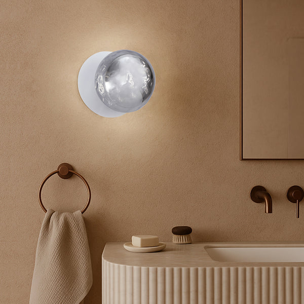 Lexi Odessa Molten Ripple Glass LED Wall Light with White Base White/Large