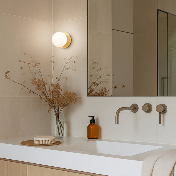Lexi Odessa Opal Frosted Glass LED Wall Light with Brass Base White/Small