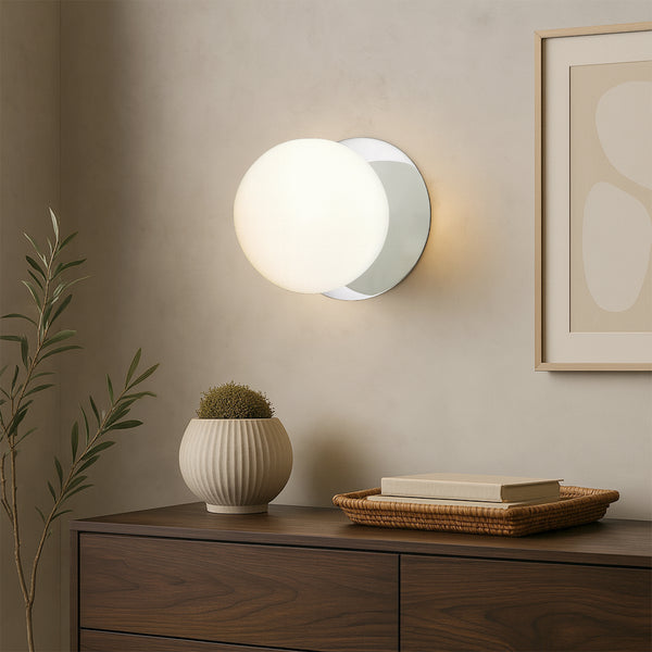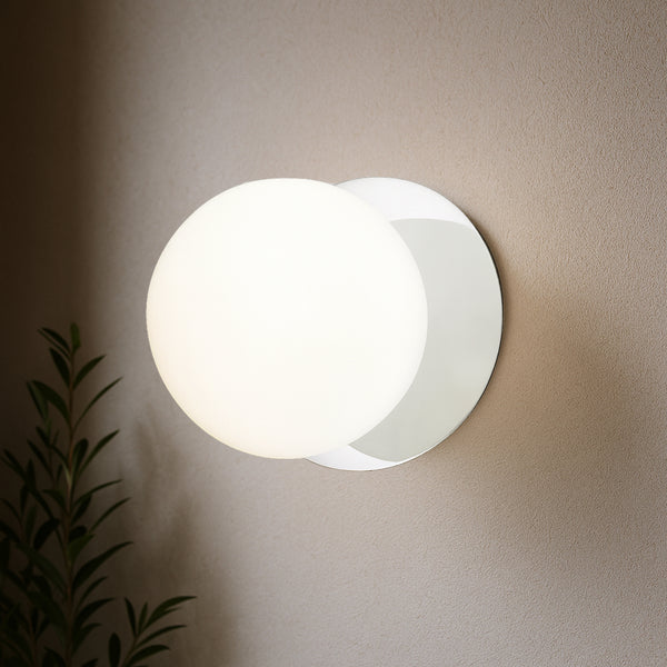 Lexi Odessa Opal Frosted Glass LED Wall Light with Chrome Base White/Large