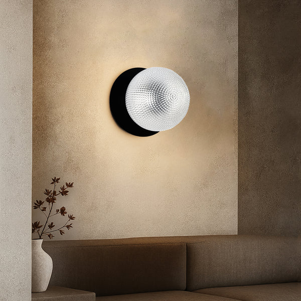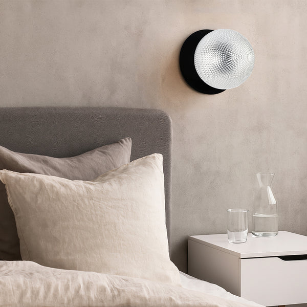 Lexi Odessa Diamond Cut Glass LED Wall Light with Black Base White/Large