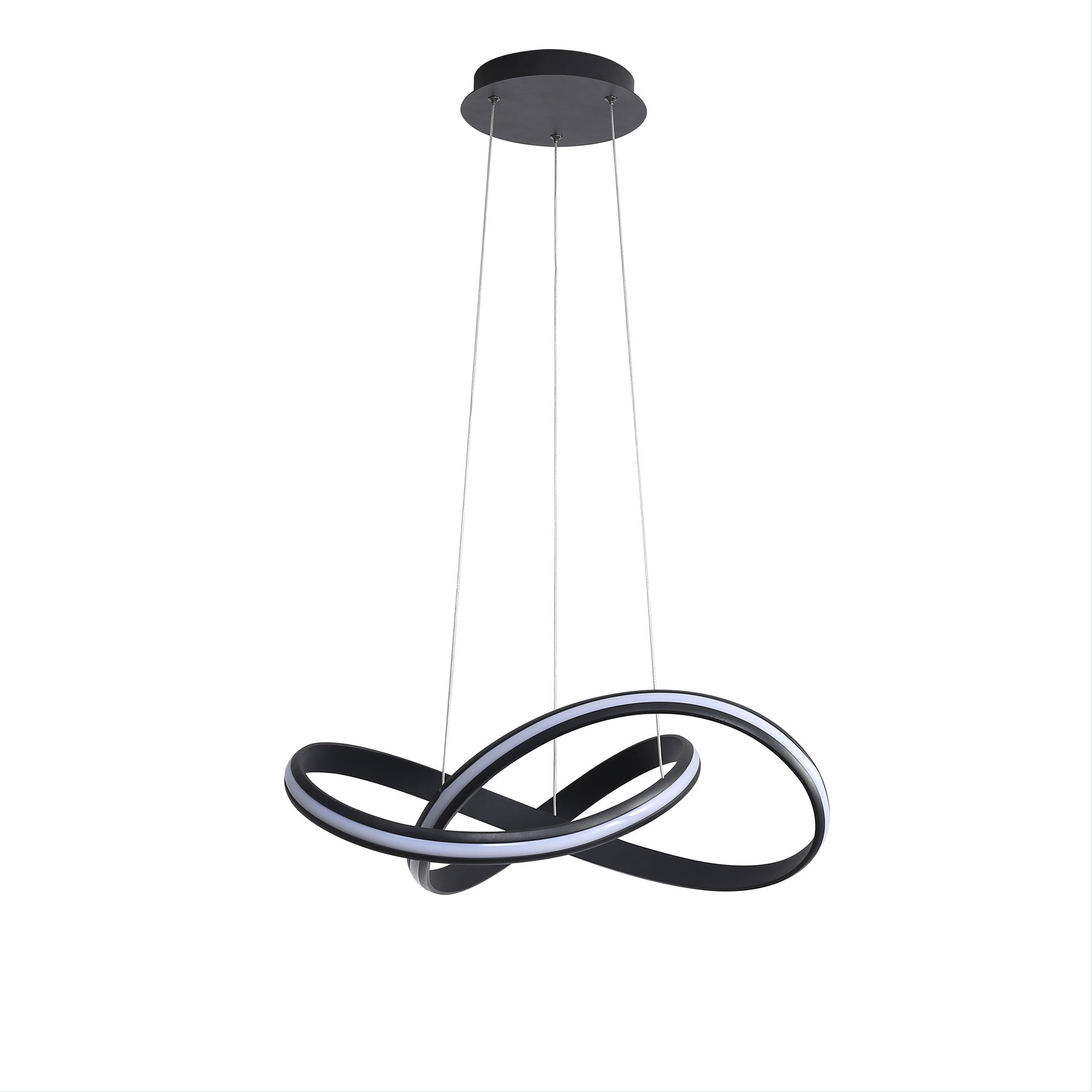 The SPIRA pendants knotted design gives it a unique appearance whilst providing excellent light. The SPIRA is a CTS (tri colour) LED pendant, allowing the installing electrician to select the desired colour temperature. This aluminium fitting is suspended on stainless steel wires which can be shortened by the installing electrician. Suitable for dimming with an LED friendly dimmer.