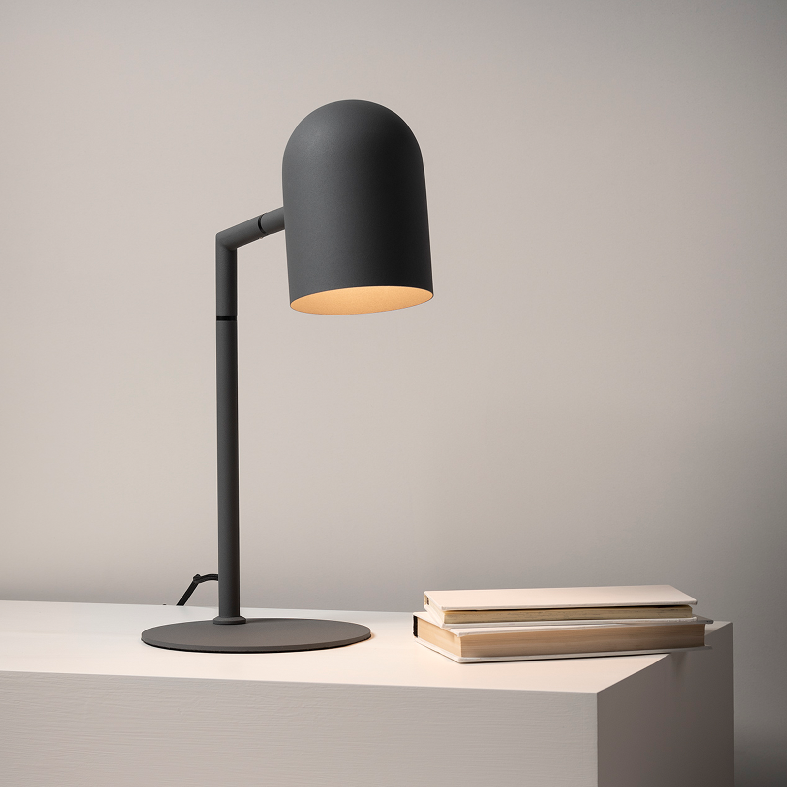 The Pia range of desk lamps & floor lamps feature a Scandinavian contemporary aesthetic combined with the practicality of a directional shade that rotates 340 degrees, allowing users to direct light to suit their needs. The Pia is available in Bone, Charcoal, Sage and Brass finishes.
