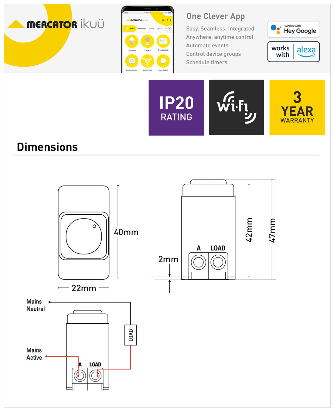 Mercator Ikuü Smart Wi-Fi Push Switch Mechanism No Neutral Required
