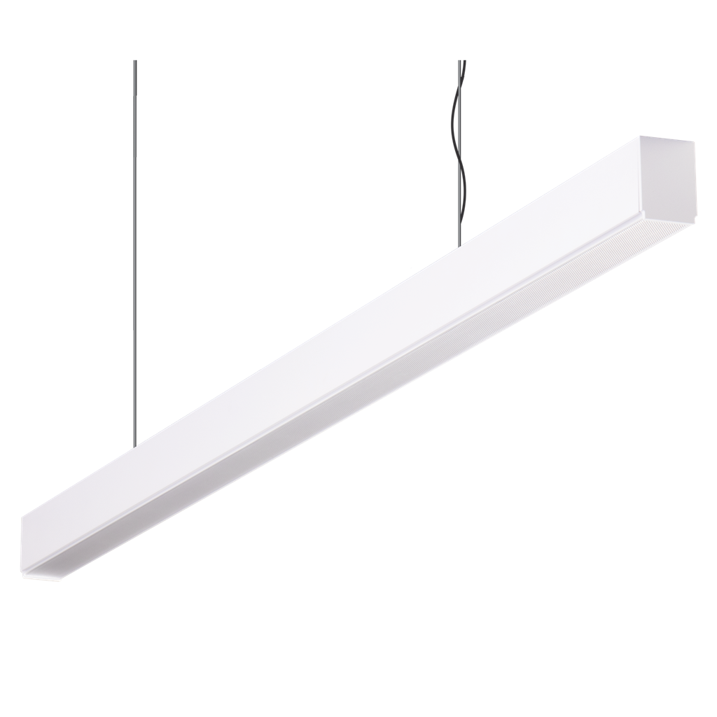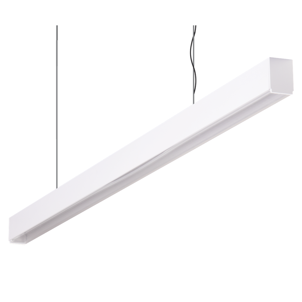 The Maxi-40 1200MM long 3000K White 24w down only 3m suspended high diffuser pendant is designed to suit residential applications, this profile system incorporates an extruded aluminium body with flat diffuser, and PLEX-COB-20W LED Strip with an integral dimmable LED driver. The system offers many additional options such as DALI dimming and Emergency function upon request. Available in 1.2M, 1.7M and 2.4M. Available in Flat, Low and High Diffuser, as well as Micro prismatic, Frosted, Black or Clear diffuser options depending on desired application, light output and appearance requirements.