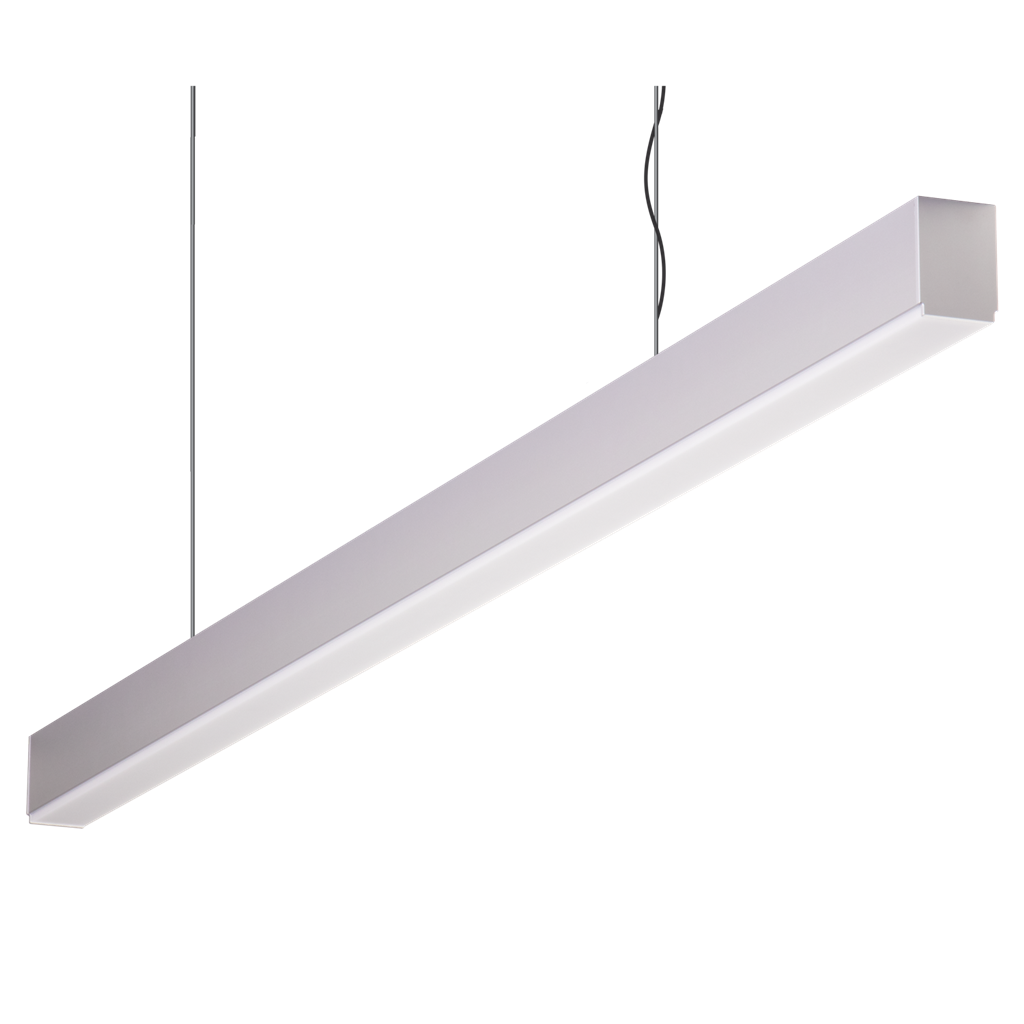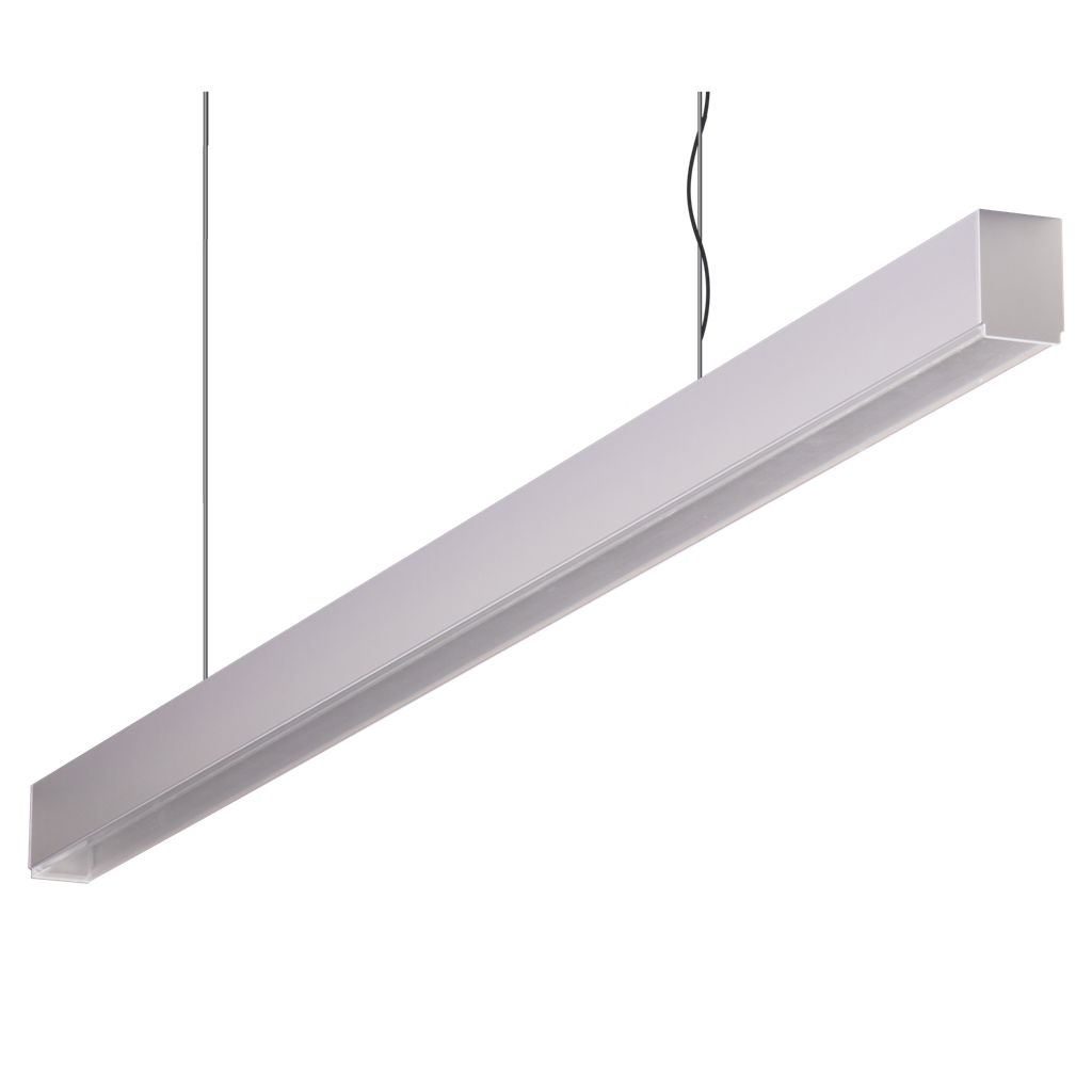 The Maxi-40 2400MM long 3000K Aluminium 48w down only 3m suspended high diffuser pendant is designed to suit residential applications, this profile system incorporates an extruded aluminium body with flat diffuser, and PLEX-COB-20W LED Strip with an integral dimmable LED driver. The system offers many additional options such as DALI dimming and Emergency function upon request. Available in 1.2M, 1.7M and 2.4M. Available in Flat, Low and High Diffuser, as well as Micro prismatic, Frosted, Black or Clear diffuser options depending on desired application, light output and appearance requirements.