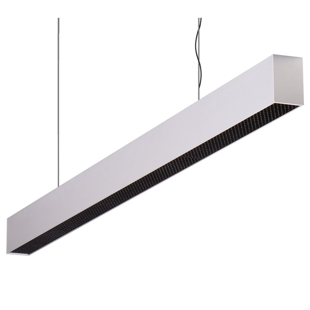 The Maxi-50 1700MM long 3000K Aluminium 34w down only 3m suspended diffused pendant is designed to suit residential applications, this profile system incorporates an extruded aluminium body with flat diffuser, and PLEX-COB-20W LED Strip with an integral dimmable LED driver. The system offers many additional options such as DALI dimming and Emergency function upon request. Available in 1.2M, 1.7M and 2.4M. Available with Micro prismatic, Frosted, Honeycomb, Opal, Black or Clear diffuser options depending on desired application, light output and appearance requirements.